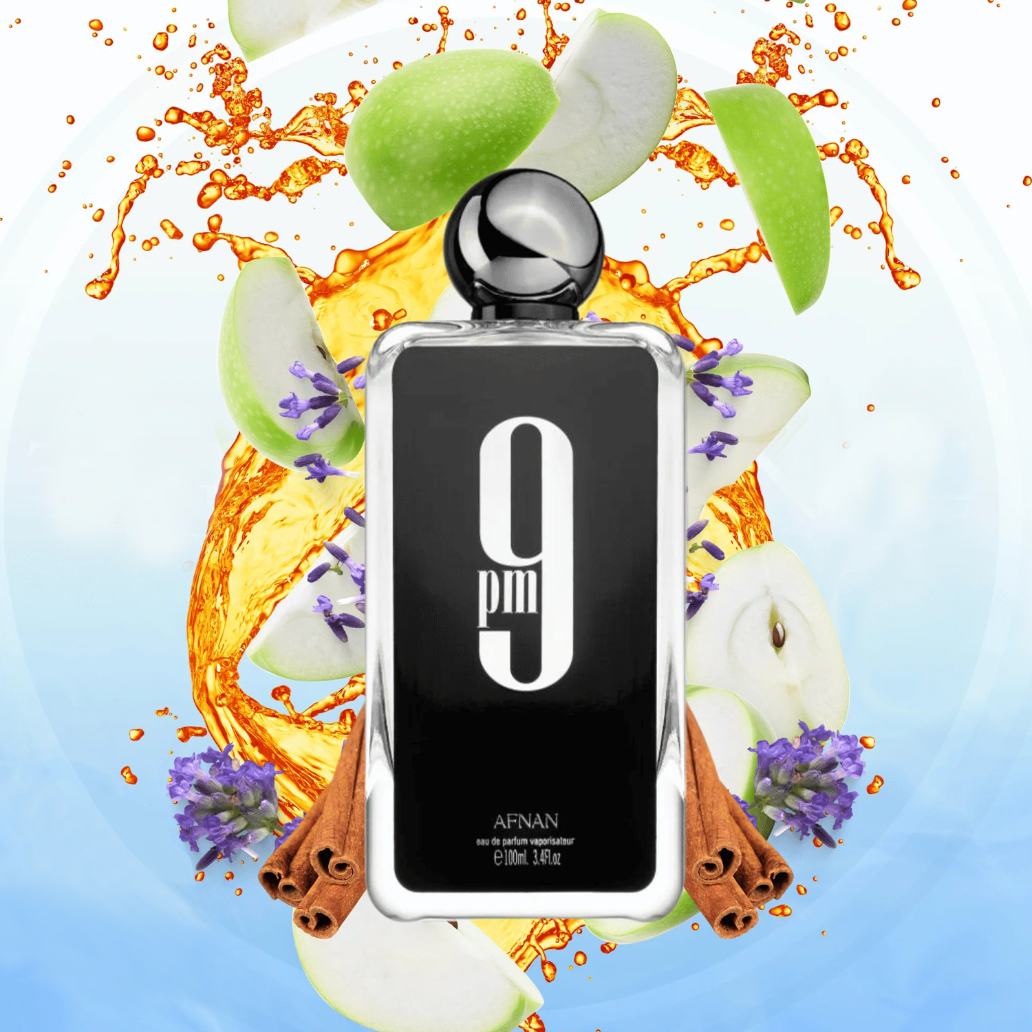 Afnan 9PM EDP is an elegant amber vanilla fragrance for men, blending apple, cinnamon, and more, launched in 2020.