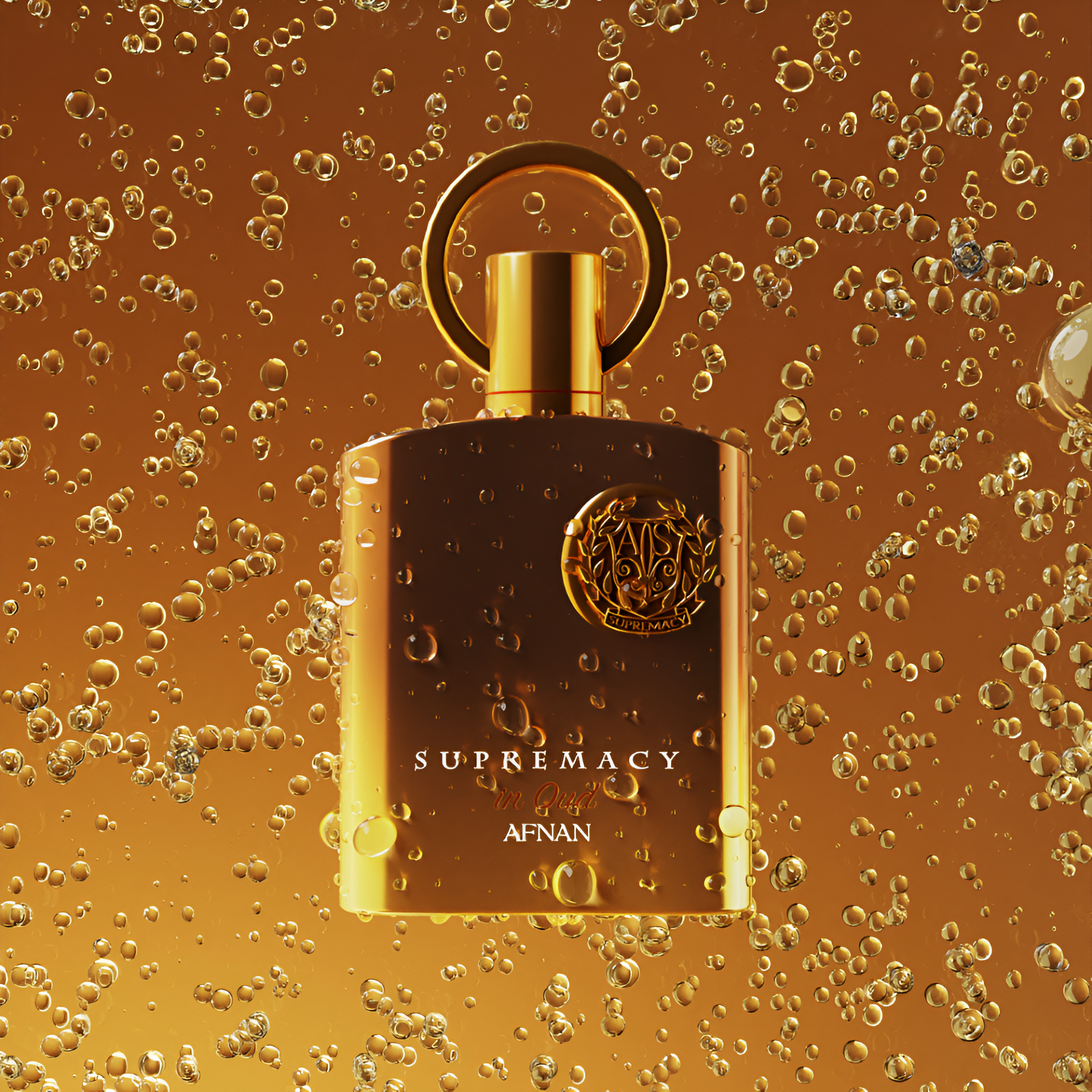 Experience Afnan Supremacy Gold EDP: a luxurious amber fragrance with nutmeg & peach blossom, embodying elegance since 2013.