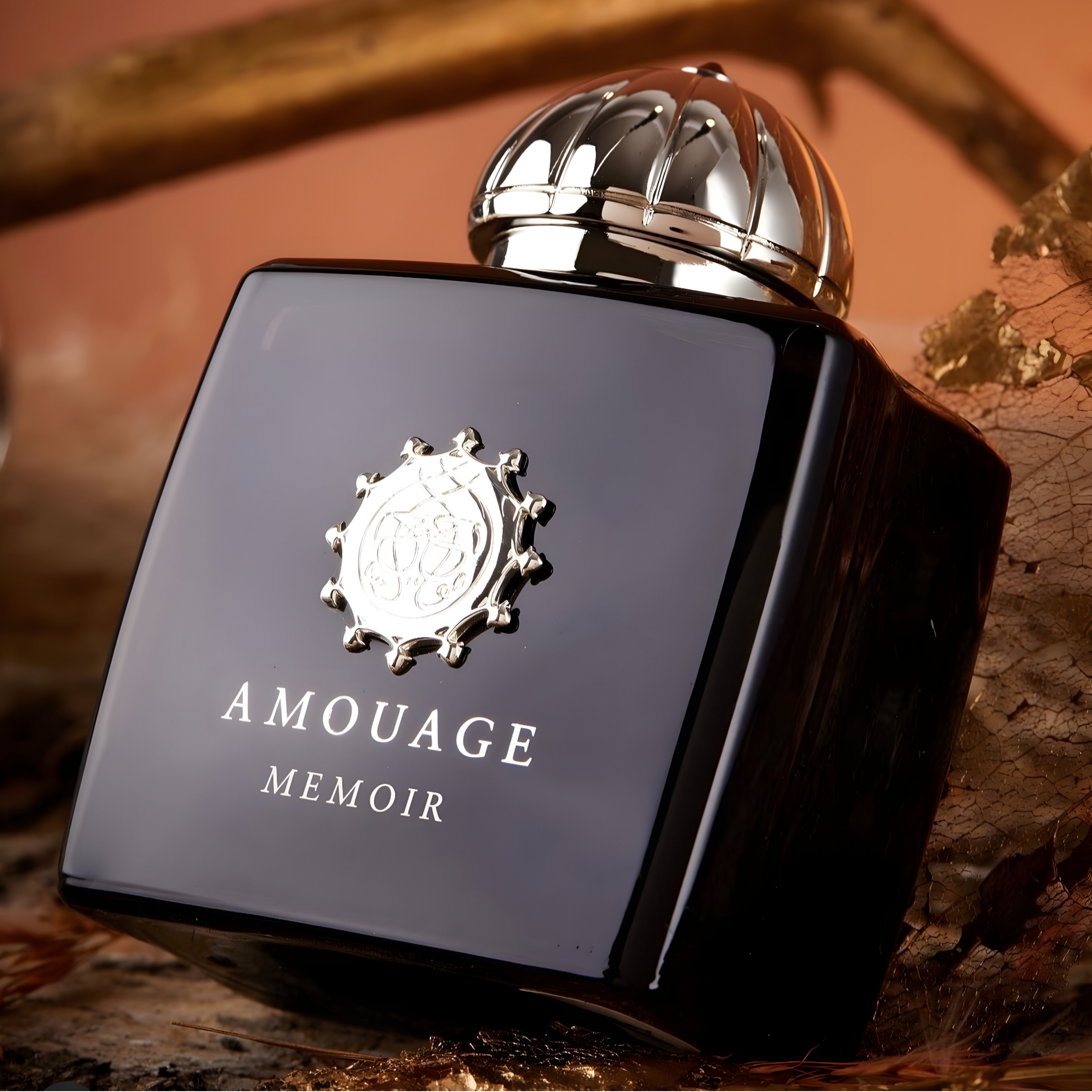 Experience Amouage Memoir EDP, a luxurious scent with wormwood, leathery fougère, and deep tobacco notes, evoking a storied elegance.