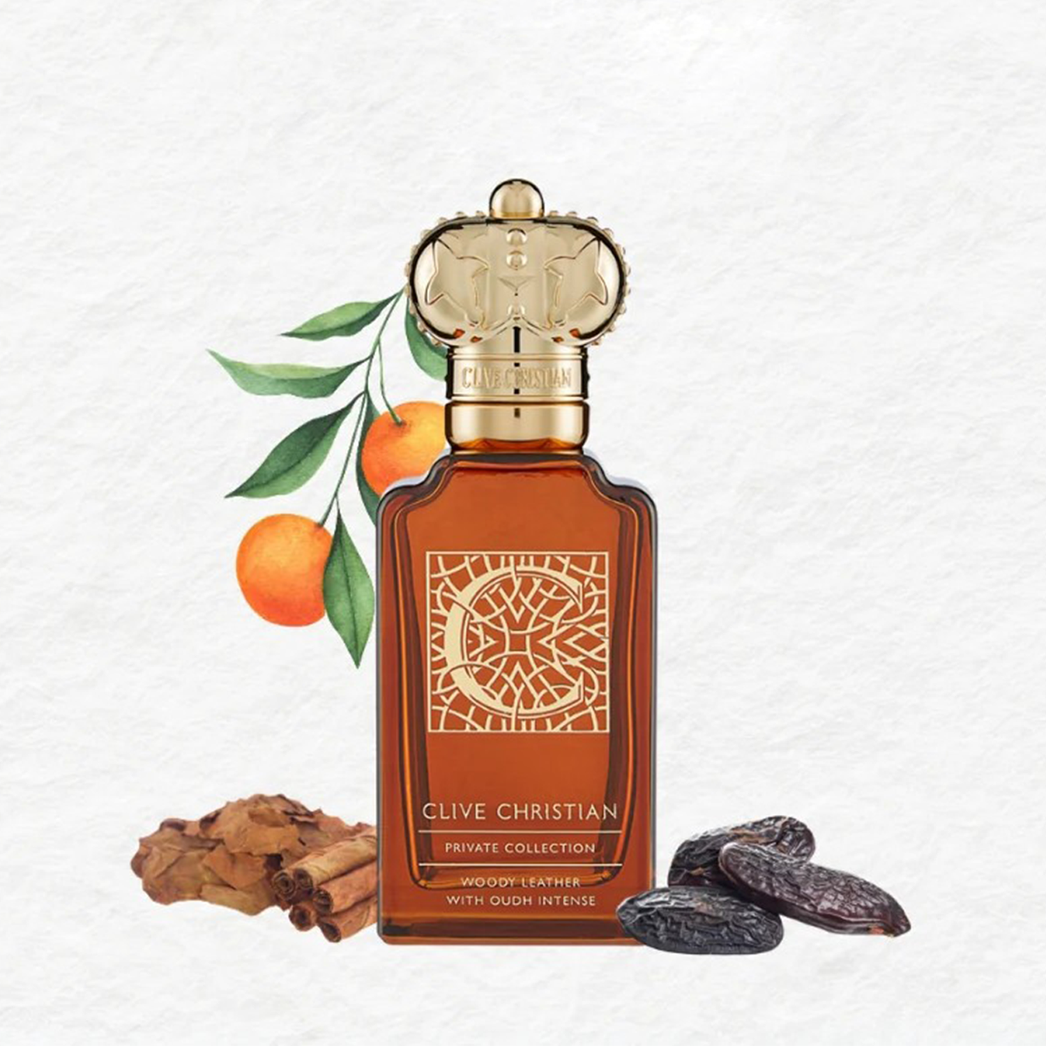 Clive Christian Private Collection C Woody Leather Perfume is a deep, woody fragrance that bestows a captivating, seductive allure upon the skin. A harmonious blend of saffron and tobacco ignites a deep, smoky warmth.