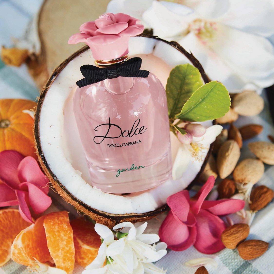 Dolce & Gabbana Dolce Garden EDP smells like a delightful blend of sweet floral notes, creamy coconut, and fresh citrus, evoking a sunny, dreamy garden in full bloom.