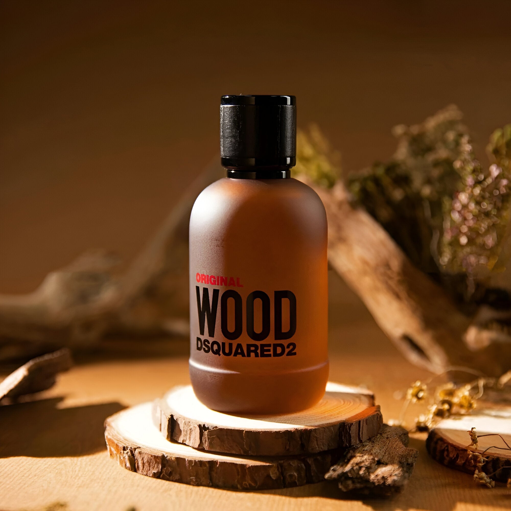 Dsquared2 Original Wood EDP has a warm and earthy scent with notes of fresh wood, spices, and a touch of sweetness, creating a rugged yet refined aroma.