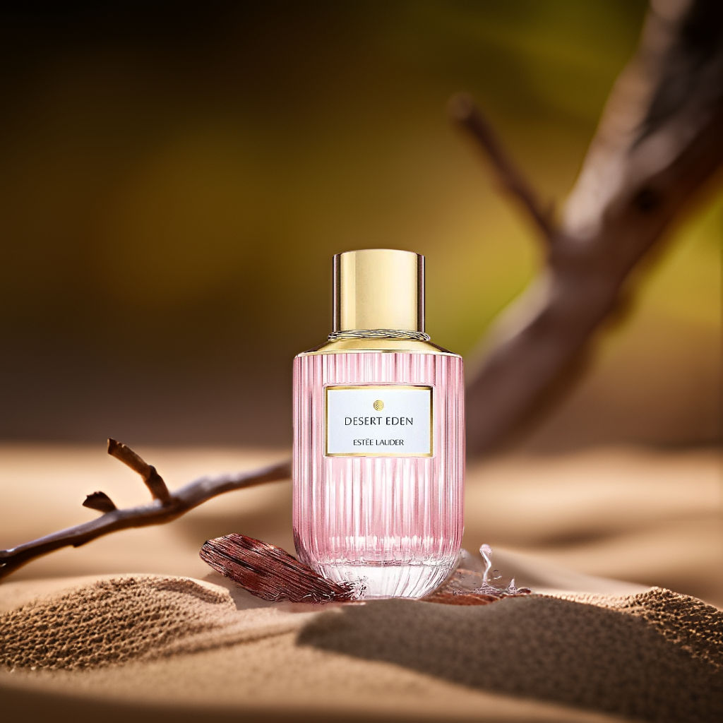 Discover Estee Lauder's Desert Eden, a serene blend of sandalwood, rose, and olibanum in a luxe bottle.