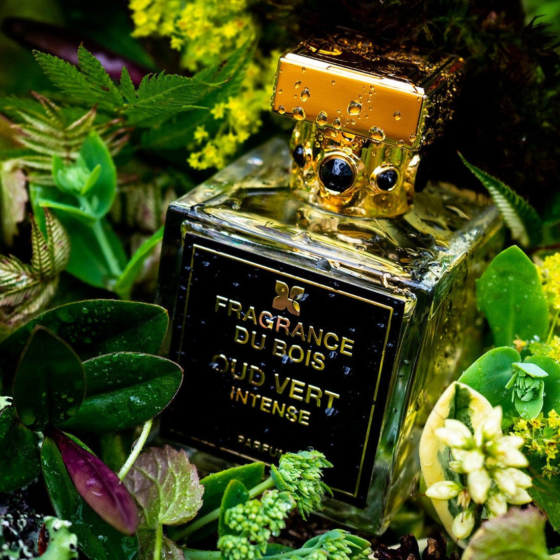 Embark on a sensory journey with the enigmatic Fragrance Du Bois Oud Vert Intense Parfum.