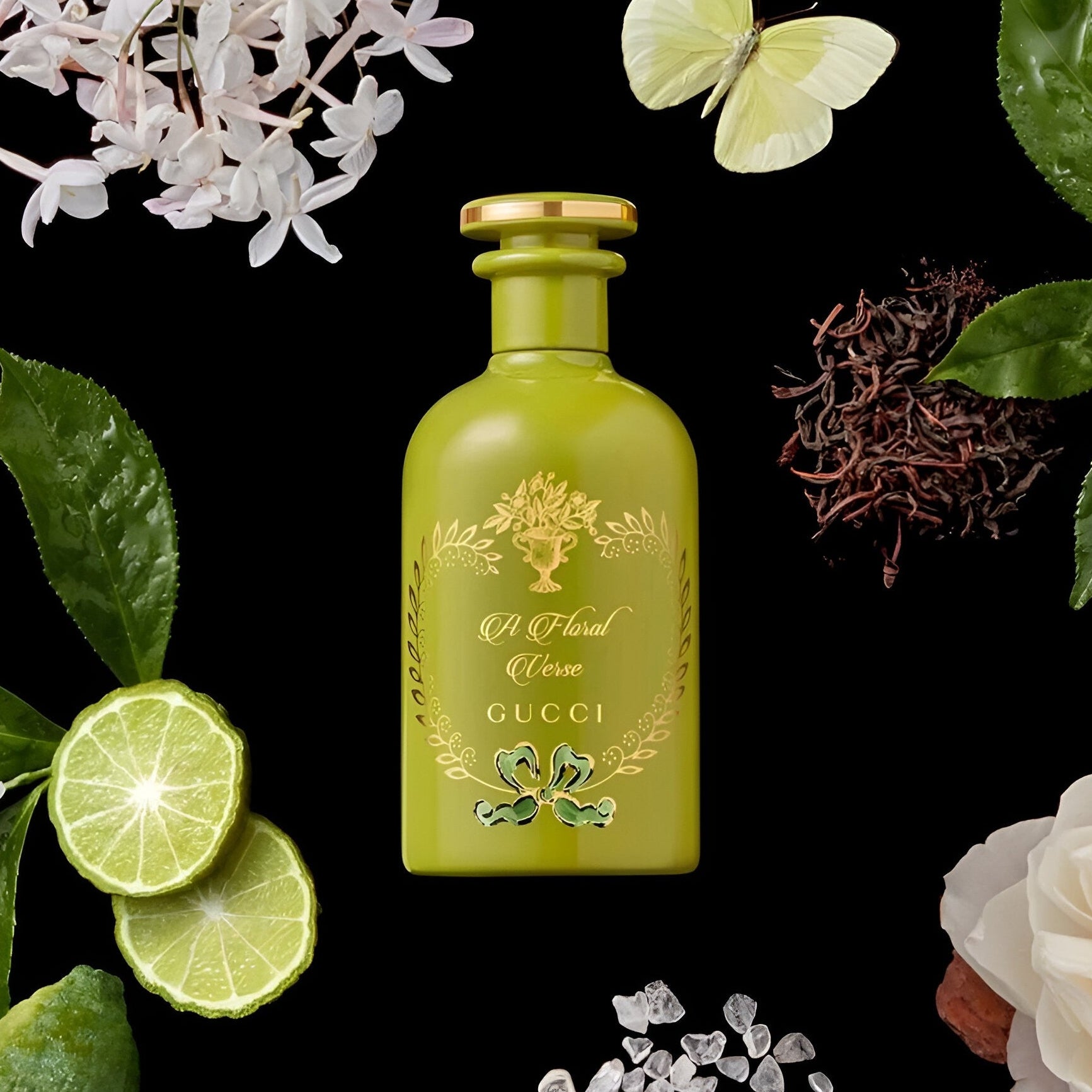 Gucci The Alchemist'S Garden A Floral Verse EDP is a luminous Floral Green unisex fragrance blending the poetry of light and darkness. This evocative scent from the Alchemist's Garden collection elegantly captures nature's transition from moonlit dusk to vibrant dawn.