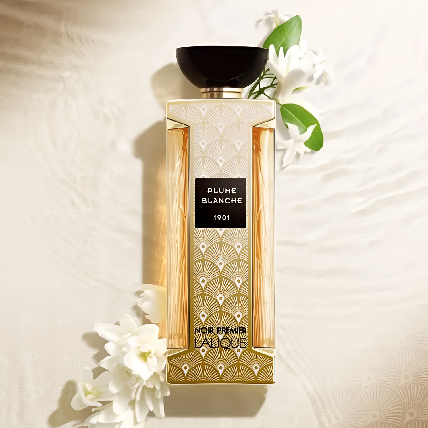 Lalique Noir Premier Plume Blanche 1901 EDP smells like a delightful blend of sweet flowers and fresh citrus, wrapped in a soft musk, evoking the enchanting beauty of nature and art.