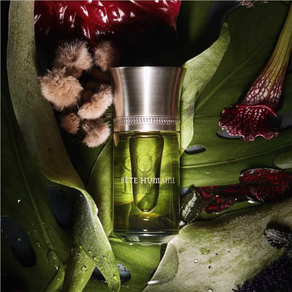 Liquides Imaginaires Les Eaux de Peau - Bete Humaine EDP (Unbox) is a primal, woody fragrance that evokes raw earth and fur. It blends resinous smoke, warm woods and mineral-green facets into a magnetic, animalic veil.