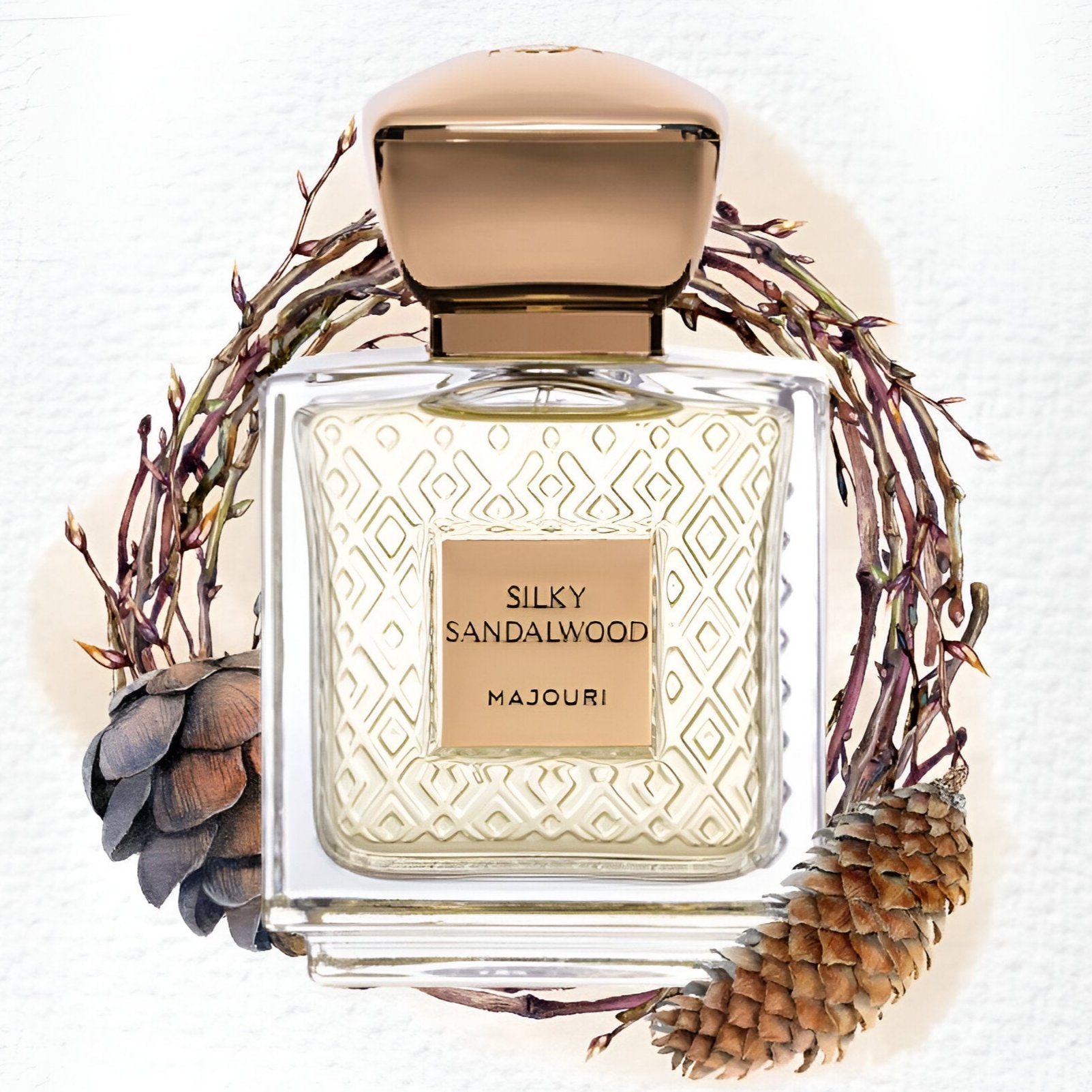 Discover the timeless allure of Majouri Silky Sandalwood EDP, a unisex fragrance with incense, pink pepper, sandalwood, and myrrh notes.