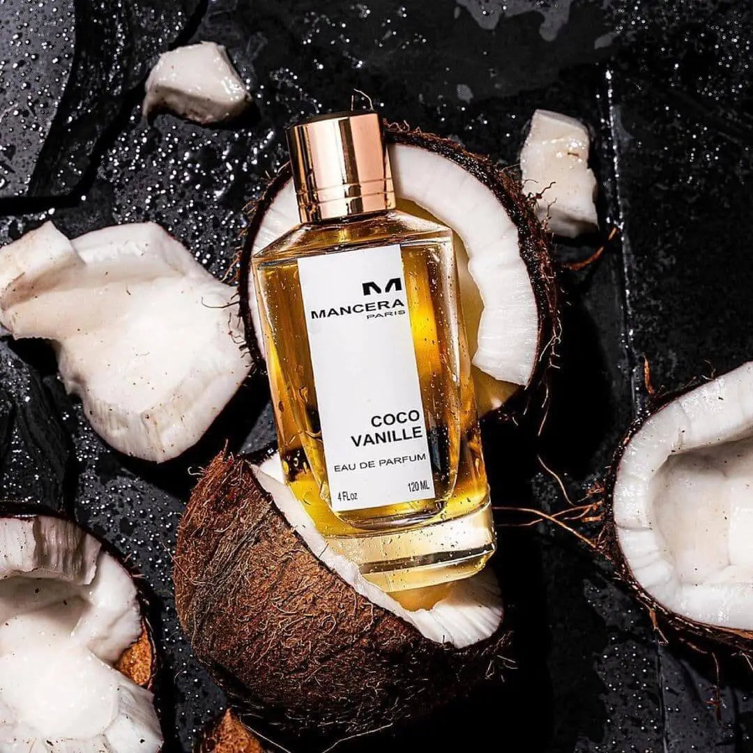 Mancera Coco Vanille EDP smells like a blend of coconut, vanilla, and peach, with tropical floral and sweet amber vanilla notes.