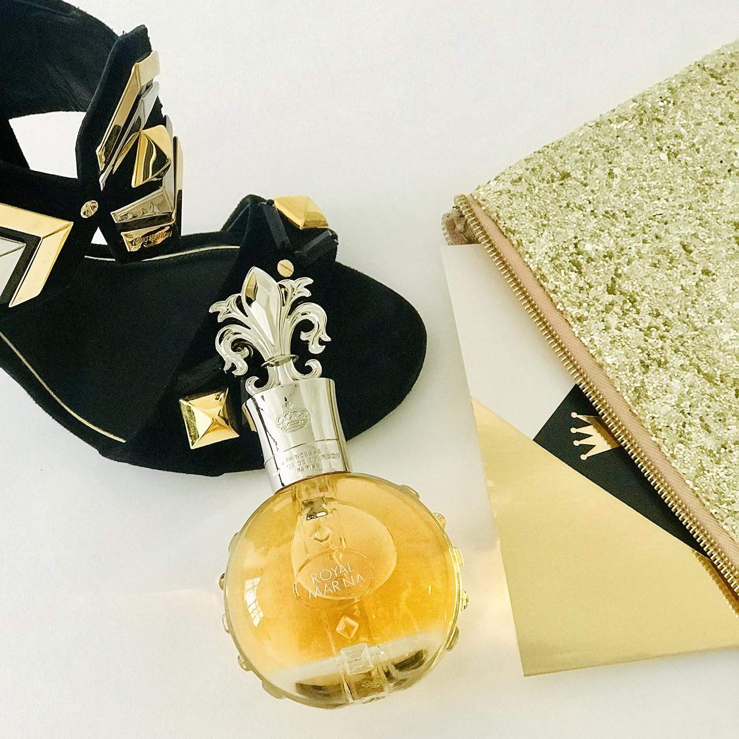 Marina De Bourbon Royal Marina Diamond EDP exudes a luxurious amber aroma with sparkling notes of grapefruit and blackcurrant, capturing the opulence of French royal splendor in a jewel-encrusted bottle.