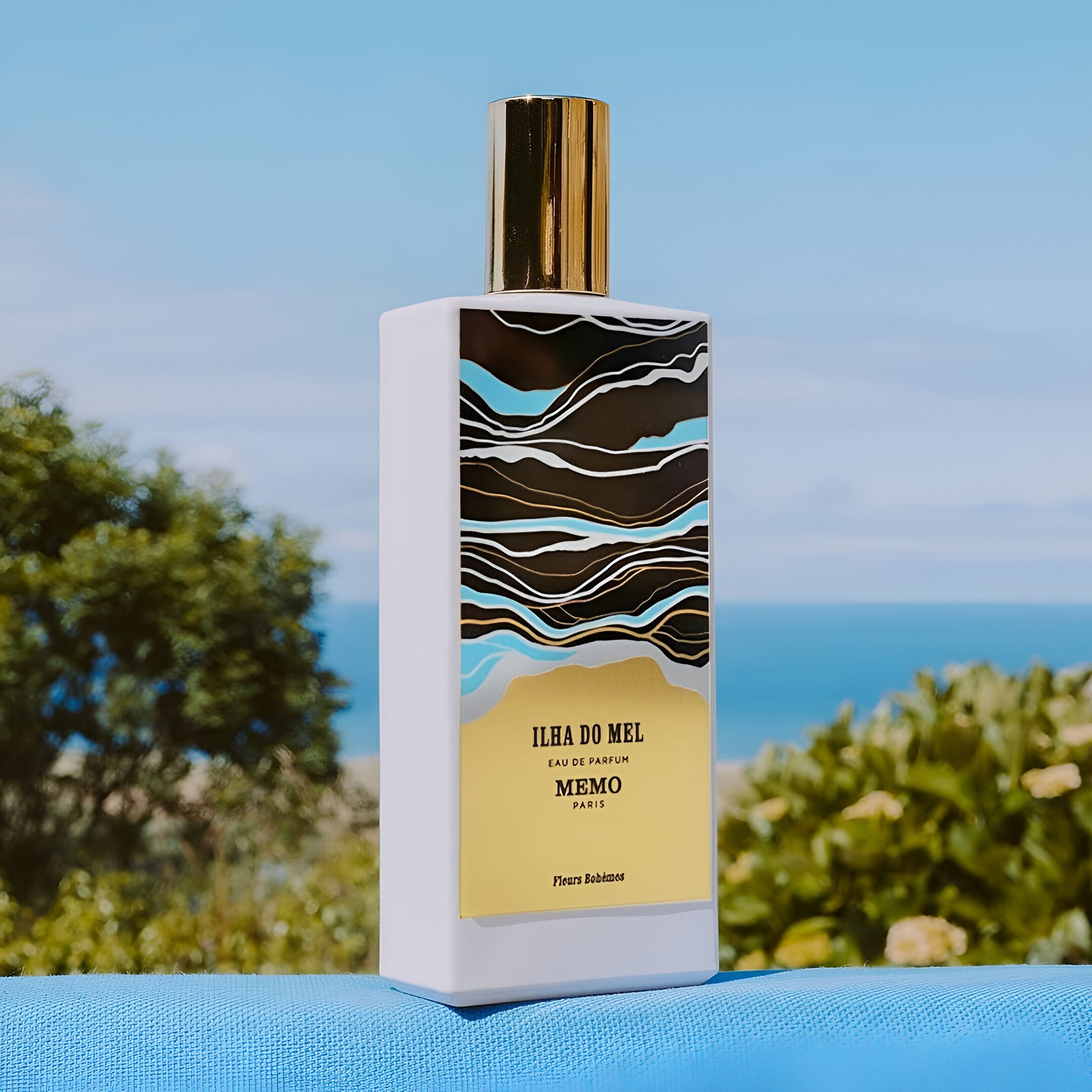 Memo Graines Vagabondes Ilha Do Mel EDP smells like a serene blend of juniper, jasmine, and gardenia with a touch of iris and broom, evoking the peaceful essence of an untouched island paradise.