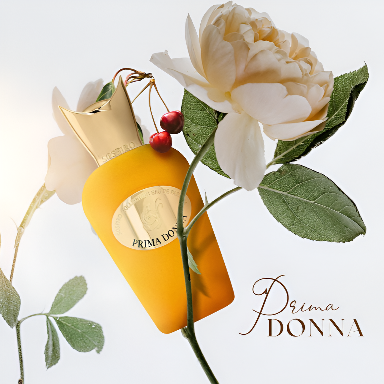 Sospiro Prima Donna EDP combines fruity cherry, jasmine, rose, leather, musk, chocolate, and cedarwood for an unforgettable, elegant fragrance.