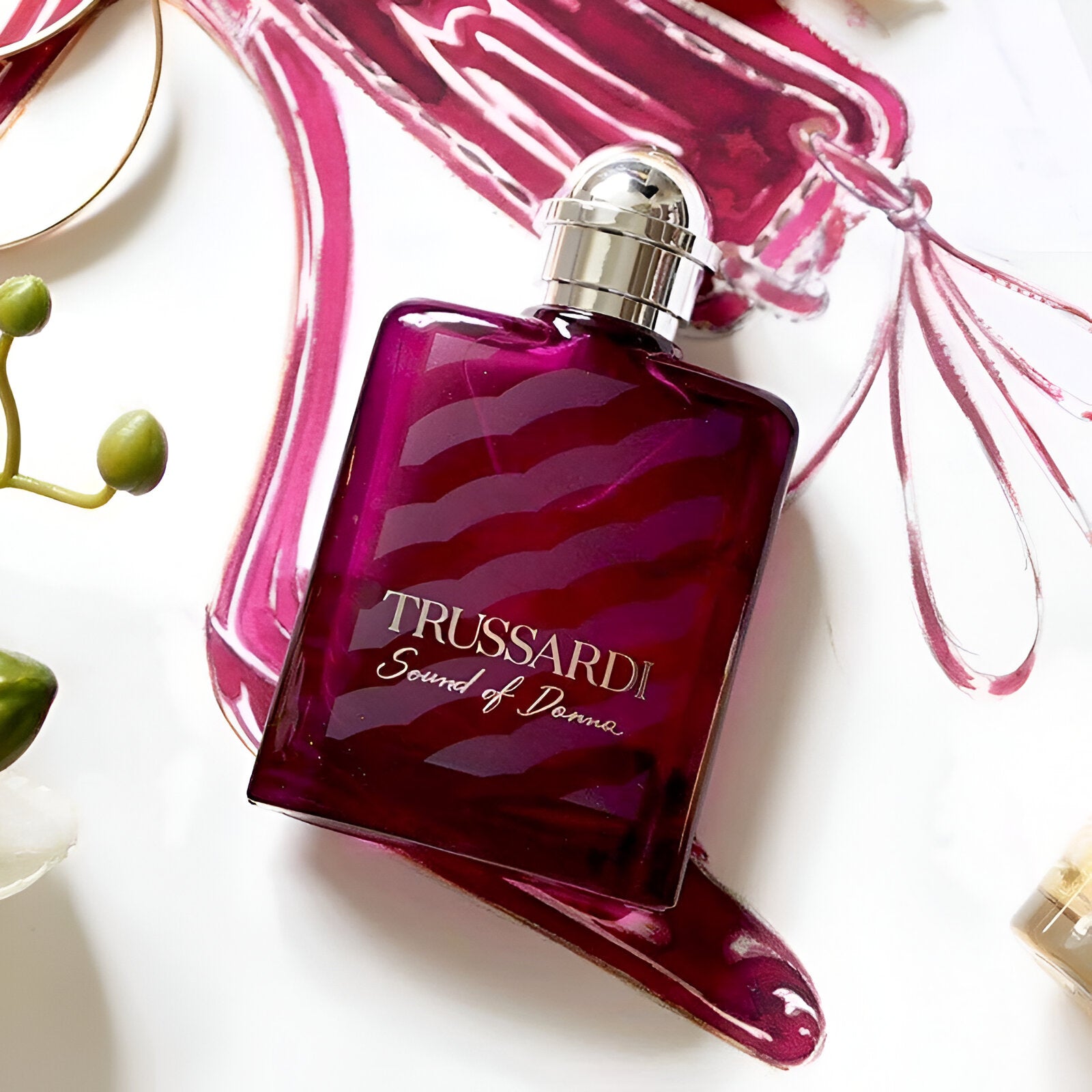 Trussardi Sound Of Donna EDP smells floral and fruity, with notes of fresh pear, delicate jasmine, and warm cedar, creating a vibrant and elegant fragrance.