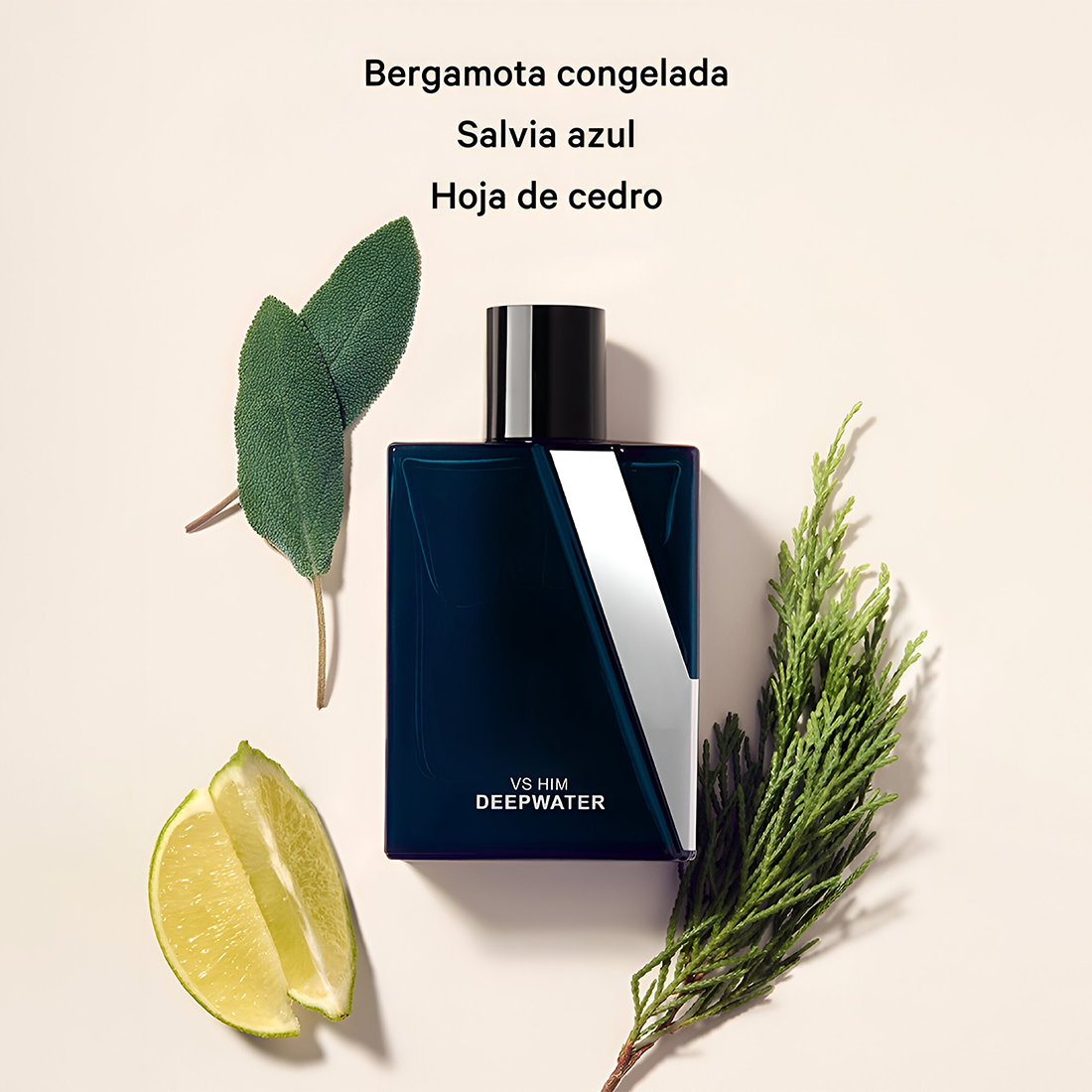 Victoria's Secret Deepwater Him EDP smells like a refreshing blend of bright bergamot and cool aquatic notes, with a hint of fruity undertones that evoke the adventurous spirit of the ocean.